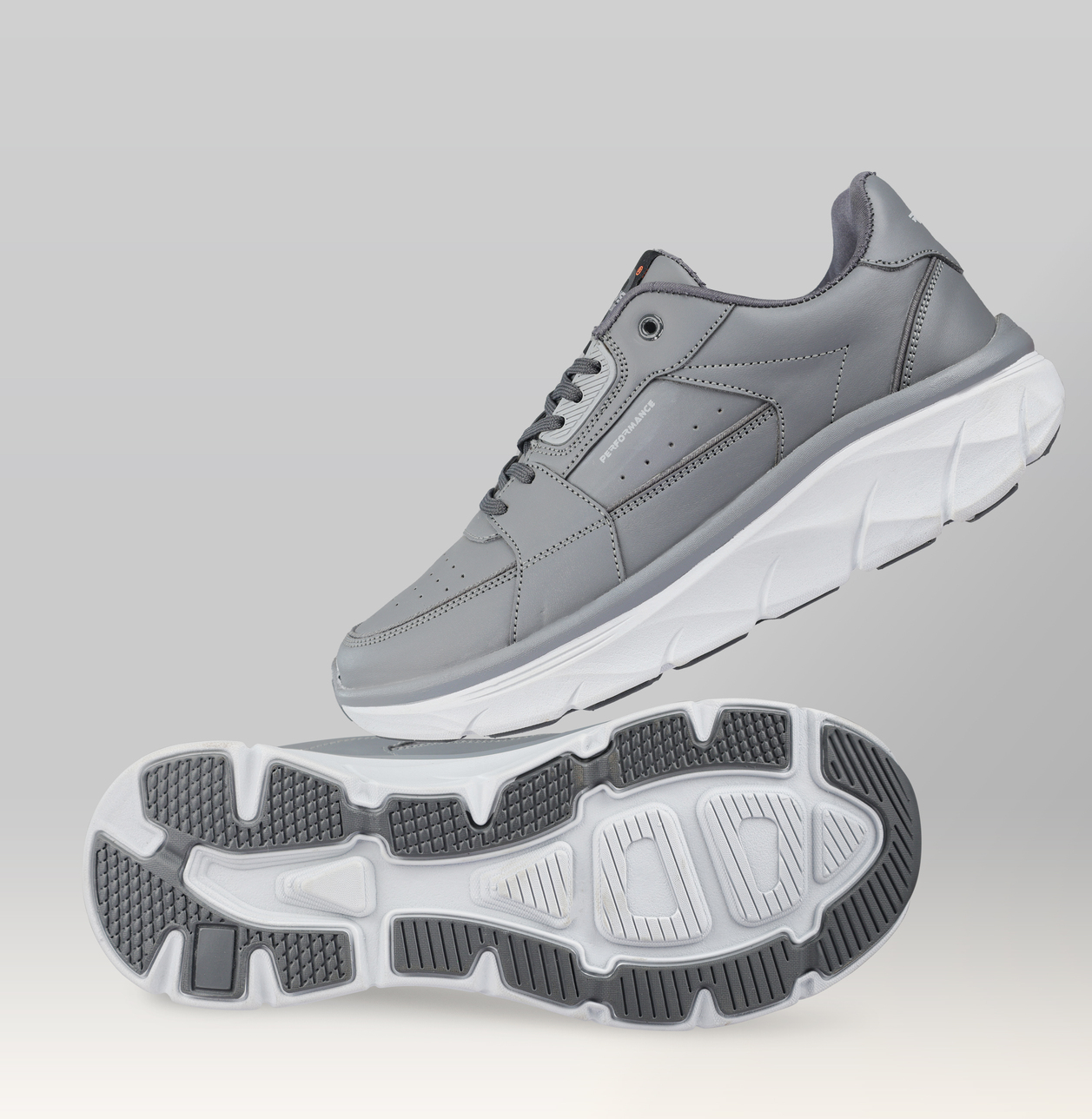 To enhance movement and impact protection, Rydus Performance shoes are built with a lightweight EVA (Ethylene Vinyl Acetate) midsole featuring integrated shock absorption technology. EVA is known for its superior cushioning properties and lightweight feel, making it ideal for active footwear. This midsole absorbs impact efficiently, reducing stress on joints and ensuring smooth, responsive movement with every step.
